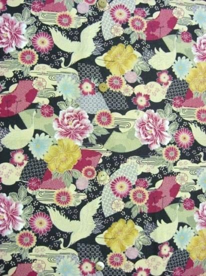 鶴に花・黒地 ※3L/4L可 (税抜き価格15,000円)ky-769