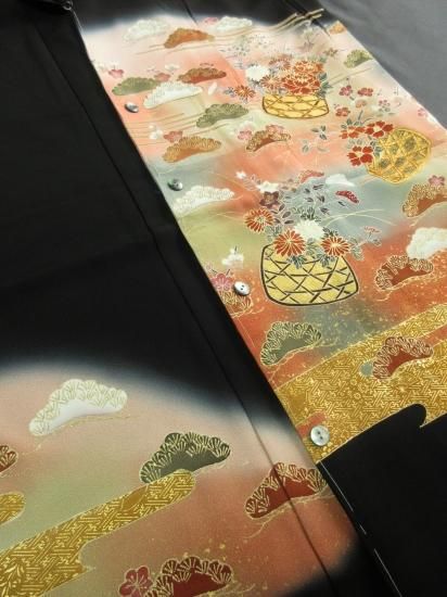 【正絹】京友禅黒留袖創作黒留袖使用「松に花篭文」(税抜き価格45,000円)sk-279