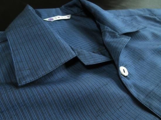 【正絹】男着物よりお誂え「紬織りアロハシャツ/縞柄」※現品のMサイズ・半袖のみ (税抜き価格22,000円)ge-430