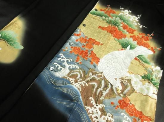 【正絹】京友禅創作黒留袖/荒波鷲猛禽桜〜金駒刺繍〜(税抜き価格50,000円)sk-301 ※長袖は不可