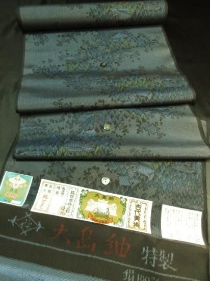 【正絹】アンティーク本場大島紬「風景文」 (税抜き価格40,000円)sk-310