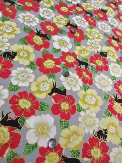 「-金彩-椿にクロネコ(グレー)」(税抜き価格15,000円)my-646