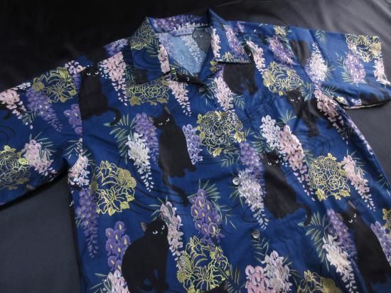 【女性用/現品のみ】黒猫に藤の花/新色navy (税抜き価格15,000円) ※現品のLサイズ・半袖のみ (税抜き価格15,000円)ge-457