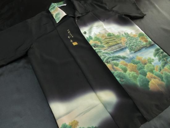 【現品のみ】【正絹】作家作品落款入り/京友禅創作黒留袖/金閣寺 ※現品の2Lサイズ・半袖のみ (税抜き価格40,000円)ge-479