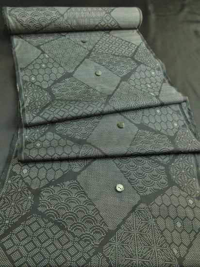 【正絹】アンティーク本場大島紬「7マルキ/切嵌吉祥文」 (税抜き価格30,000円)sk-361