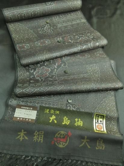 【正絹】美術工芸品「大島紬/唐花吉祥文」 (税抜き価格35,000円)sk-360