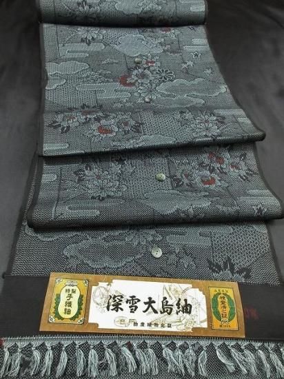 【正絹】深雪大島紬「霞雲に四季の花文」(税抜き価格35,000円)sk-364
