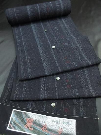 【正絹】美術工芸品「紬/縞に枝葉文」(税抜き価格30,000円)sk-363