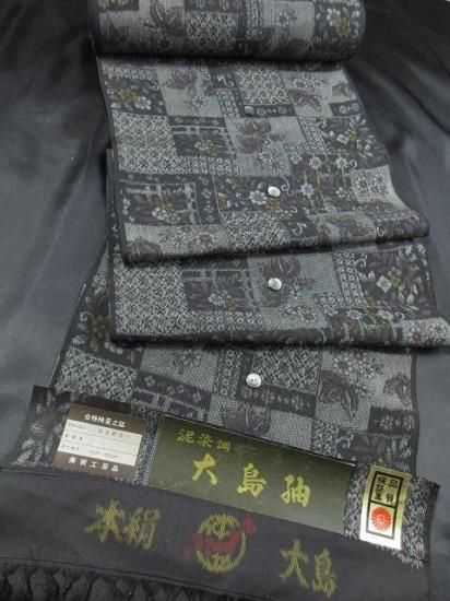 【正絹】美術工芸品「大島紬/唐花吉祥文」 (税抜き価格35,000円)sk-362 ※ラスト1着につきMサイズまで半袖のみ制作可。